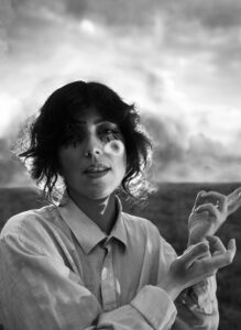 Ein Fuß drin, einer draußen, „One Foot In, One Foot Out“, so dekodiert sich „1FI1FO“, der Titel von Leonie Schlager alias The Zew’s letztjährigem Debüt-Album – einerseits ein passendes Gleichnis für die „Zustände der Liminalität“, mit denen sich ihr Songwriting beschäftigt, andererseits eine treffende Beschreibung ihres gleichermaßen intim selbstgemachten wie ätherisch außerweltlichen Sounds. Oft klingt Schlagers konsequent unaufgeregte Stimme so, als sänge sie im Zimmer nebenan, von der berührbaren Welt distanziert durch Echo, Hall oder verfremdeten Pitch, ihre zumeist gezupfte E-Gitarre einmal geloopt dann wieder nicht, mit einem heimeligen Hang zum warmen, leicht angedumpften Drone. „Cyborg Folk“ nennt The Zew diesen Sound, der in seinem melodiösen Minimalismus manchmal ein wenig an Bridget St. John, Vashti Bunyan, Connie Converse oder Nico zu Zeiten von „Chelsea Girl“ erinnert. Songs wie „This is“, „Itchy Feet“ „The Collector“ oder „Come on Down“ landen im unvorbereiteten Ohr mit der Selbstverständlichkeit des Immerschondagewesenseins, der Aura lange verschollen gewesener Schätze. Dabei ist The Zew unter uns, und wir können sie tatsächlich beim Popfest spielen sehen, mit allen sechs Augen in ihrem Gesicht (vier davon malt sie sich auf die Wangen, als Symbole des „female gaze“). „Here is that sound again, tipping me over.